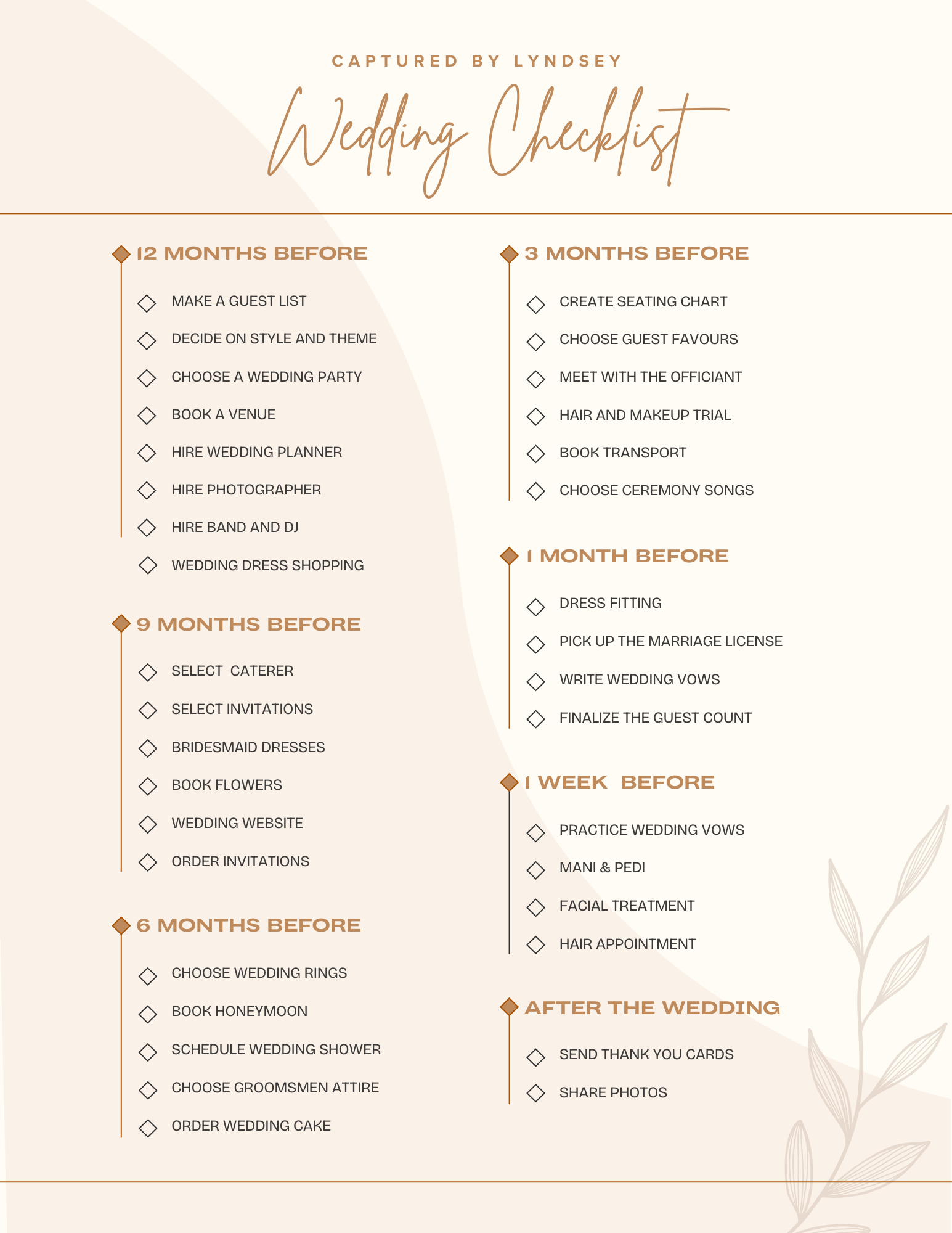 Getting married soon? Download our Wedding Planning Timeline Guide! This will help you know when to book certain vendors when, and not get too overwhelmed during this amazing time of your lives!